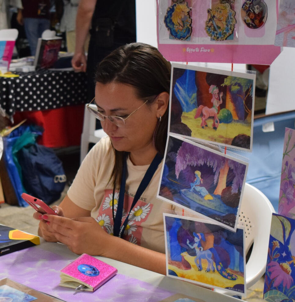 Sono Alessia, un'illustratrice ligure dalla provincia di Imperia. Fin da piccola sono stata affascianata da tutte le arte visive, in particolare cartoni animati, fumetti e videogiochi. Crescendo questa passione non è svanita ma si è pian piano trasformata in un lavoro, iniziando a collaborare con pubblicazioni indipendenti, arrivando a pubblicare libri illustrati e un fumetto in uscita a Lucca 2024.